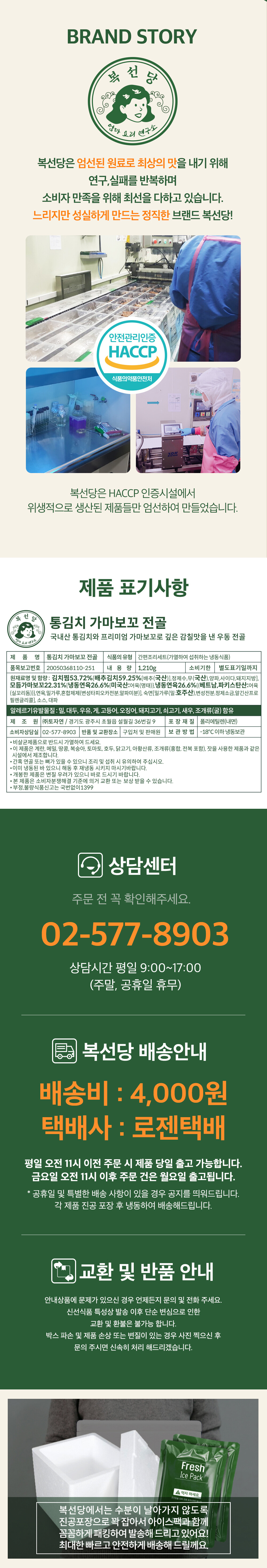 복선당 국내산 통김치 가마보꼬 전골 1,210g