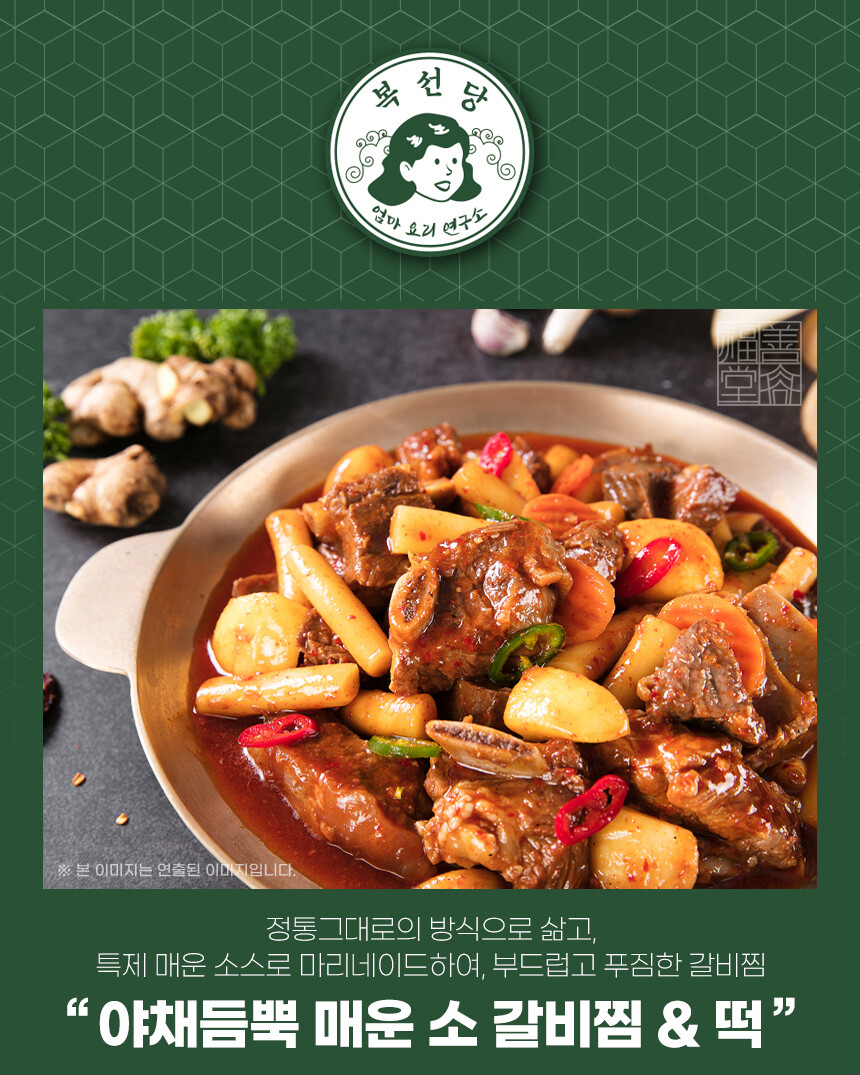 복선당에서 준비한 "야채듬뿍 매운 소갈비찜"은 깐깐한 눈높이를 맞춘 재료와 깨끗한 손질, 토자연만의 노하우로 만들어 맛과 퀄리티가 메인 메뉴, 특식 메뉴로 손색이 없어요!