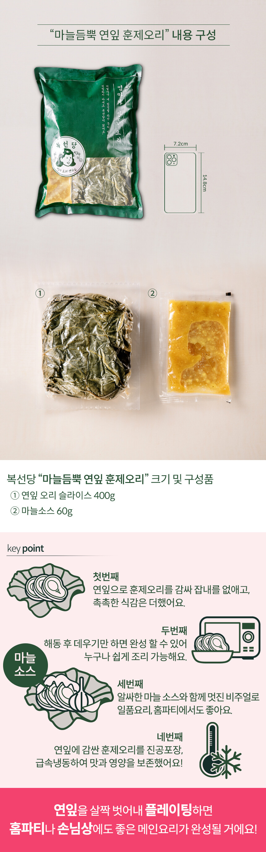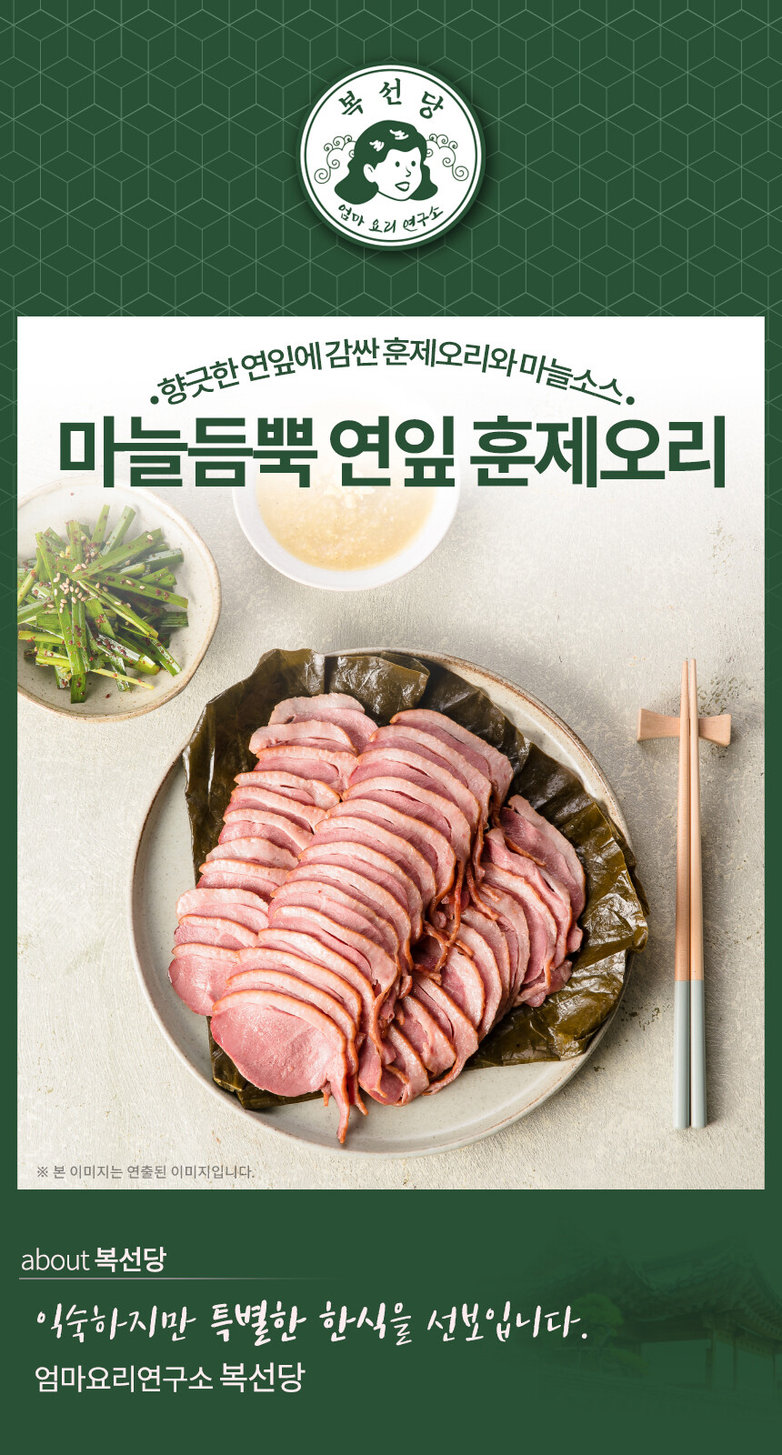 향긋한 연잎으로 감싼 훈제오리와 마늘소스의 꿀조합