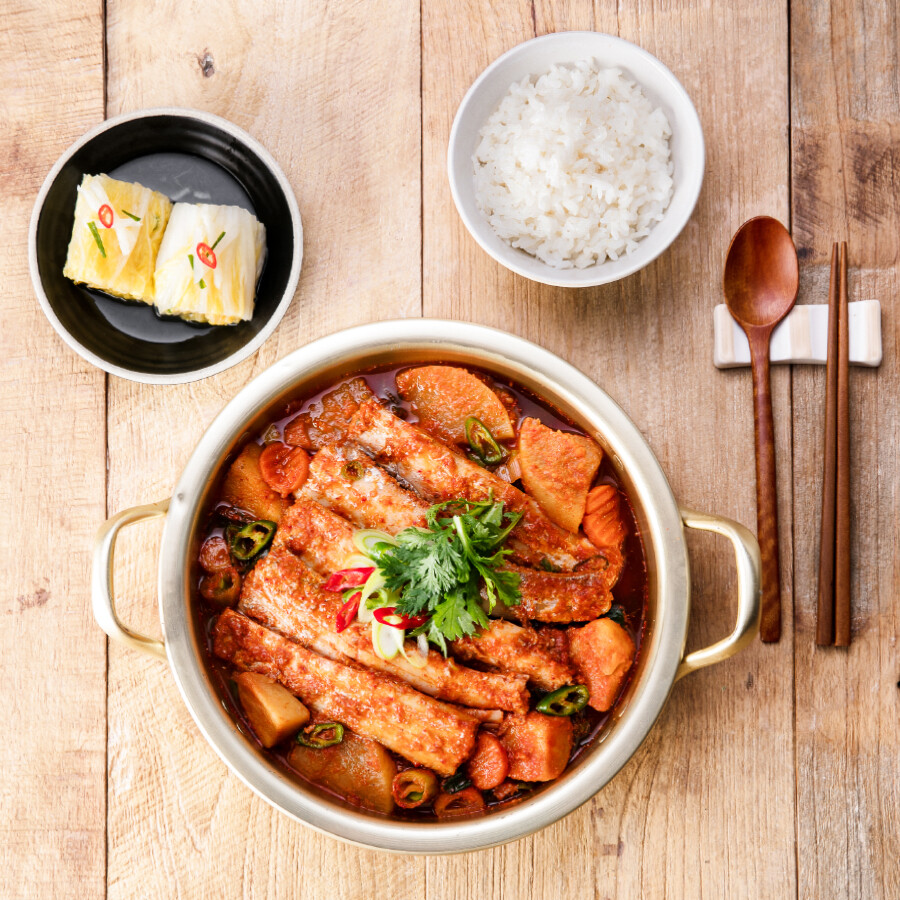 칼칼한 국물로 조려낸 국내산 갈치조림에 무, 감자, 당근 등 채소를 더해 영양과 풍성함까지를 더한 남대문식 갈치조림을 가정에도 간편하고 쉽게 완성하실 수 있어요. 깔끔하고 위생적인 조리시설, 재료손질과 레시피는 물론 국내산 갈치와 유기농 벨기에산 감자와 당근 그리고 남대문식 갈치조림으로 멋진 한끼를 즐겨보세요!