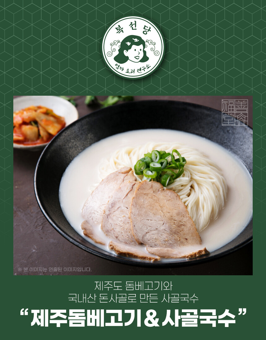 제주산 돼지고기로 만든 돔베고기와 국내산 돈사골을 더해 담백하고 진한 국물에 쫄깃한 면까지