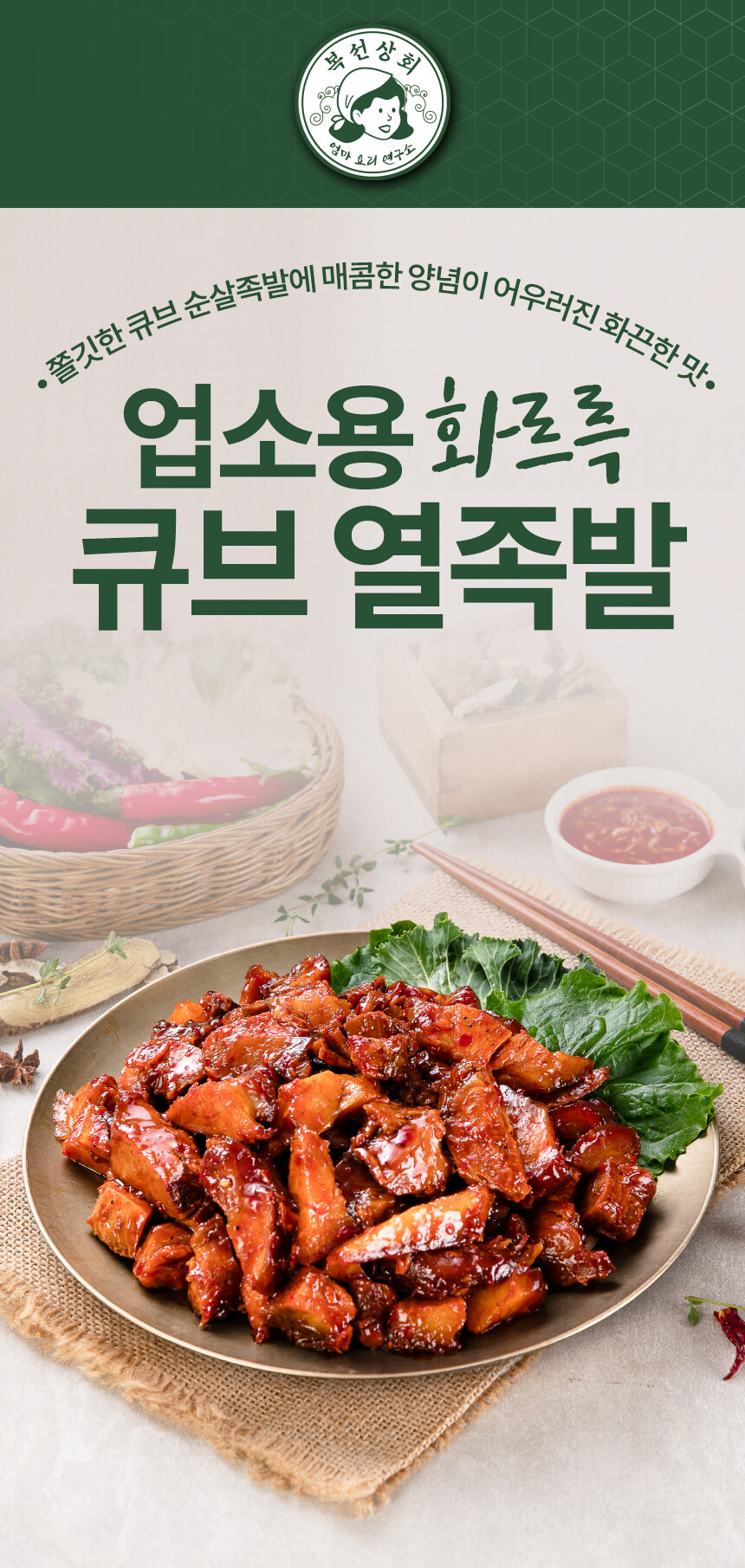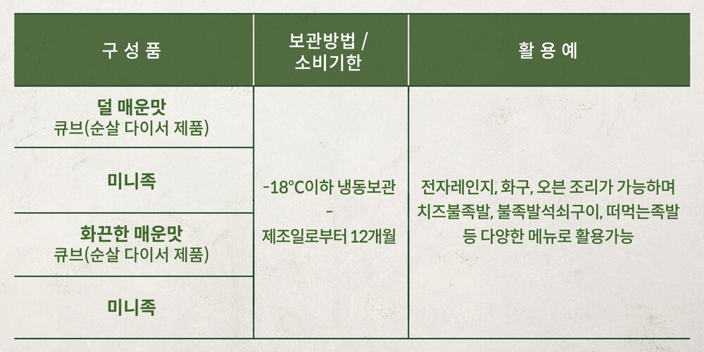- 덜 매운맛으로 누구가 쉽게 접할 수 있는 매콤한 맛의 큐브불족발